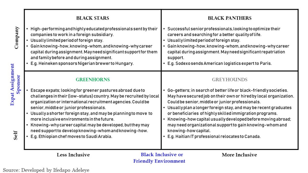 Be they greenhorns, greyhounds, black stars or black panthers, black expatriates have a lot to offer organizations. Now is the time for organizations to go beyond mere rhetoric, and take their corporate social justice responsibilities seriously. They need to start executing strategies to build black (expatriate) talent pipelines, foster a climate of (black) inclusion, and provide support to their black employees. These would play out in different ways in different organizations, industries and countries, but inaction should not be an option this time. I hope this article provides some useful tips and insights for senior leaders and talent management professionals looking to support their internationally mobile black employees. Since this is an exploratory piece, there is a need for empirical studies to test, validate and extend the typology. Researchers can also help by continuing to shed light on diversity, equity and inclusion practices in organizations, and offering evidence-based insights on how to better manage Black expats. We need to hear more from Black expatriates on what organizations can do to address their unique needs, preferences, and circumstances.